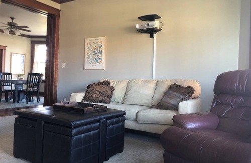 Welcome to this charming house in Morton. This beautiful property is on the main floor of a unique house originally built in 1890 which has been updated and converted into a duplex, it features 2 cozy bedrooms with queen beds, a lovely bathroom with a bathtub, and a quaint living room with an extra child bed. Guests can enjoy amenities like heating, WiFi, and AC during their stay. Our place is equipped for both long and short stays to make your holiday one to remember. I, the owner, live half the year in the basement guest suite, with a separate entrance. My sister manages the property when I am away and is only a couple blocks away.