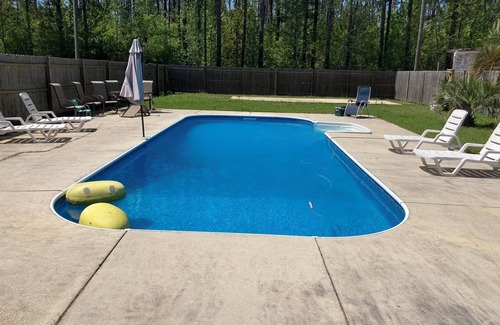 Yes, this Fairhope house has a swimming pool. Check the Facility Overview section for details about the pool and other available facilities.