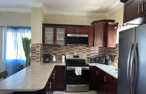 Experience Ocho Rios like a local in this adorable 2-bedroom townhome. The bedrooms feature a queen bed and 2 full beds, perfect for a small group of guests. With amenities like WiFi, AC, and flat screen tv's in each room you'll have everything you need for a comfortable stay. The three bathrooms even include a bathtub for a relaxing soak after a day of exploring. Country Mist is a safe gated community situated just 5 minutes away from the heart of Ocho Rios. Many famous attractions are very near by including Dunn's River Falls, Dolphin Cove, river rafting and many more.