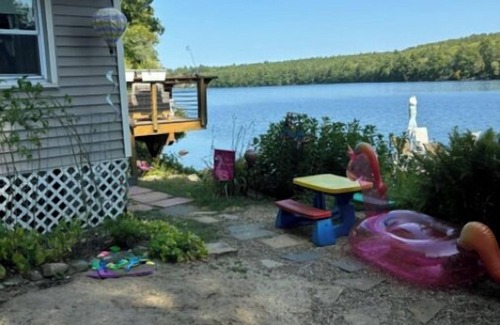 This rustic waterfront cabin in Barrington on Lake Nippo is perfect for your escape. Bring your family and leave with memories of swimming, fishing, kayaking or just plain relaxing. With a first floor bedroom including a queen and twin, and an attic loft with a king, full, and child bed, it's a cool and enjoyable space for guests and perfect getaway for families or couples on vacation.. The living room offers an extra twin bed for added sleeping. The bathroom comes equipped with a hair dryer and towels. AC, WiFi, linens, outdoor shower and heating ensure a welcoming stay. Delightful retreat in spring, summer and autumn, Enjoy Smore's by the outdoor fire pit overlooking the lake. Close to all New Hampshire and Maine seacoast attractions. Weekly rentals only. We're happy to assist with any questions while you stay at our cabin.