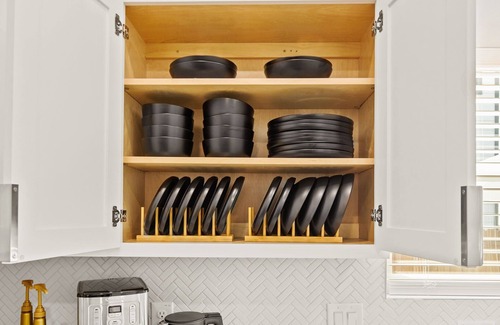 Beautifully designed kitchen has plenty of space to cook and bake till your heart’s content. Channel your inner chef while you’re on vacay in the fully loaded kitchen with everything you’ll need for whipping up tasty meals. Aside from all the kitchen basics, you’ll also find a toaster oven, a blender, and a dishwasher.