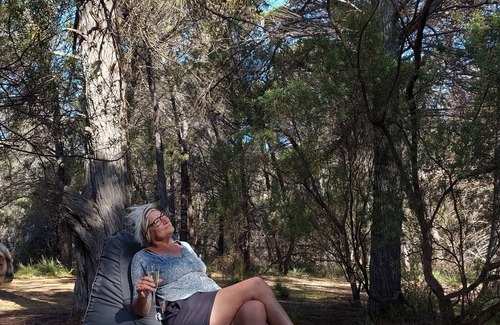 The bathroom attached to the main cabin is a unique feature. The clear perspex roof allows views of the forest and sky, so it feels like you are truly bathing in nature! It is a converted rainwater tank with shower and standard toilet (not composting).