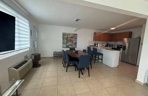 True 3 bedroom 2 bath condo with 1 king bed, 1 queen, a full sized bed and bunkbed in the Finding Nemo themed room. Perfect for kids of all ages! With unobstructed ocean views, and nearby many beautiful beaches, you can you really soak up the Caribbean life here! Garden level with tile throughout. Perfect “wet/dry” home for enjoying the pool with waterfall + pool house. Grounds include a Pickleball/tennis court. Access the best of Puerto Rico from this central and tranquil home base