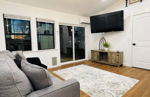 Your cozy getaway awaits in Washburn at this farmhouse. You can curl up inside to watch your favorite shows on the 65” smart TV or step outside to enjoy gorgeous views of the orchard, rows of blackberries, blueberries, gooseberries and fresh lavender from the rocking chairs on the front porch or find a seat on the new back deck that offers a beautiful view over the valley where you’ll see the sun slip over the horizon for a beautiful sunset. After sunset, enjoy your time around the fire pit and take a look at the uninhibited view of the stars without any city light pollution! With 3 bedrooms including a king, queen, and full bed, guests will have plenty of space to relax. Enjoy the convenience of fiber optic WiFi, a fully equipped kitchen, a washing machine/dryer, heating, and AC. The 2 bathrooms feature showers and soaking tub, and the living room with a sofa bed for extra comfort. Experience the magic of Washburn at our farmhouse.