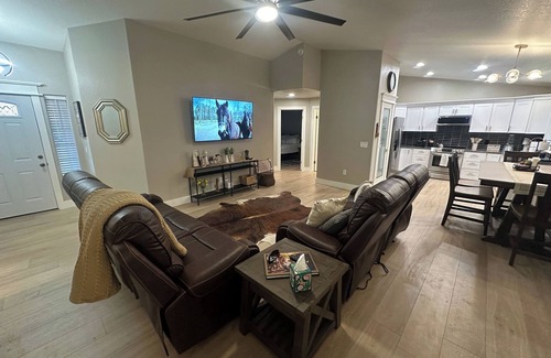 Your home away from home in Queen Creek with 3 lovely bedrooms - 1 king bed and 2 queen beds. This fabulous farmhouse boasts WiFi, AC, and a washing machine for your convenience. The 2 bathrooms are equipped with showers and hair dryers. Fall in love with Queen Creek and enjoy the magic it has to offer. Covered parking, and horse friendly. This property has a1 acre pasture with covered stalls. Only 2 miles away from horse shoe park (Queen Creek Equestrian Center) on Riggs Road. Only 40 minutes away from Phoenix Sky harbor Airport. Hiking, trail riding, and numerous places to find great food.