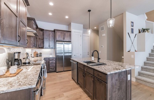 Our kitchen is completely stocked: brand new appliances, cabinets and drawers full of all the serving and cooking wares you could need, since we outfitted it as if we were living there ourselves. But if cooking on vacation isn't appealing, we are in walking distance to a Starbucks, Domino's, Taco Bell and decently sized convenience store; just out our back patio. You can also take a walk to the TPC Clubhouse for top-notch meals and even better views of the golf course and the majestic Rocky Mountains.