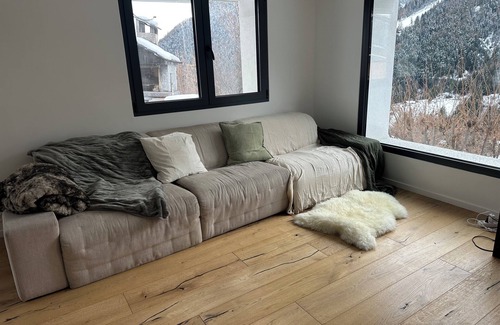 This spacious chalet has been carefully designed to provide an unforgettable luxury mountain experience. The interior decor is inspired by natural elements, featuring wood accents, high-end furnishings, and soft, earthy tones, creating a warm and inviting atmosphere.
