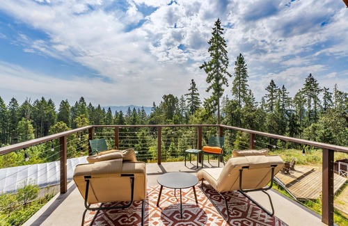 Charming A Frame on Wooded Hillside 5 min to Eugene is located in Eugene. Charming A Frame on Wooded Hillside 5 min to Eugene provides accommodation, featuring Internet, Kitchen, TV, among other amenities. This House features Internet, Kitchen, TV, to make your stay a comfortable one.
