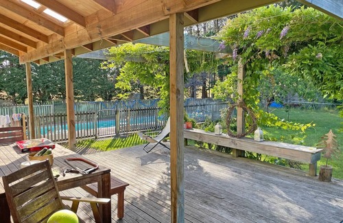 Escape to tranquillity at Pond Paddock Vineyard, nestled amidst our picturesque vineyard with sweeping views of the surrounding hills. Our cosy apartment, connected to our holiday home, offers the perfect retreat, complete with a bathroom and kitchenette for your convenience. During your stay, unwind by our inviting pool, available for your enjoyment from December 1st to February 28th.