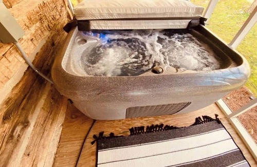 Craving a secluded hideaway? Welcome to our snug 1800s cabin, lovingly restored and modernized. Embrace tranquility while you soak in the hot tub or roast s'mores over a fire pit, ensconced in oversized chairs. Plus, we've got a Tesla 14-50 outlet ready for use!