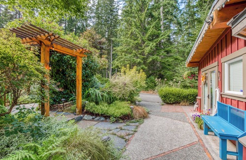 Enjoy the best of Whidbey Island while tucked away in this cozy 2-bedroom, 1-bath private guesthouse with your own full kitchen, TV, gas fireplace, and outdoor patio. This warm and welcoming studio has one queen bed in the main room and a bunk bed in the secondary room. Snuggle up on the sofa for a movie night in, or enjoy the high speed wi-fi for all your streaming or working needs. Outside, take in the lush greenery of the garden and utilize the convenience of two full free parking spaces.
