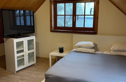 Unwind in Trakai at this charming apartment which is located right in front of the famous Trakai castle. 60 sq. m. cozy home will give you all the space you need for both long or short stays to make your holiday one to remember. Bedroom is furnished with a king bed, widescreen TV, wardrobe - everything for most pleasant stay. Living room-kitchen has a large sofa-bed, space for activities and gatherings, stove, sink, dishes. The bathroom features shower, toilet, sink, towels. Stay connected with WiFi and stay warm with heating during your stay.