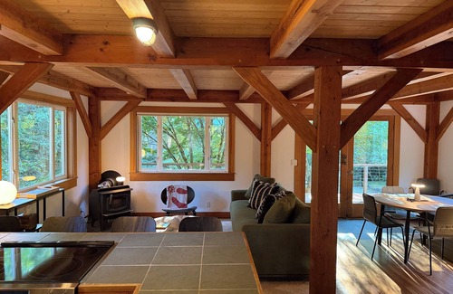 Our lovingly maintained cottage is located on a wooded acre adjacent to our home. You will see trees and greenery from every window. Parking is available directly adjacent to the cottage with easy access to the front door - just 2 steps up. On the back of the cottage is a large outdoor deck. Guests of our cottage will enjoy the feeling of being in the woods with all the urban conveniences of Bainbridge just minutes away. If you are not feeling up for driving to trails, there are trail heads just a few minutes away on foot from the property. Otherwise, great hiking trails are as close as a 5 minute drive. Bloedel Reserve, which is one of the furthest attractions on the island, is about a 20 minute drive. Winslow, the main town area and ferry terminal, is a 10-15 minute drive. Lynwood center is a 4-minute drive and boasts a great range of offerings: casual dining, cafes, a bakery/shop, cocktail bar, and even a movie theater!