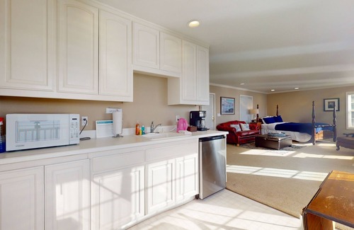 Inside, this home consists of two main areas - a living and sleeping area, and a small kitchenette. The kitchenette lacks a stovetop, but the microwave and coffeemaker let you prepare simple meals and reheat delicious leftovers from the nearby restaurants.
