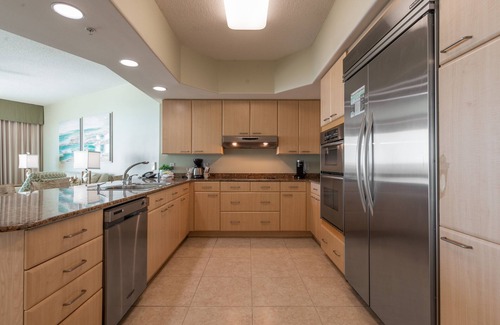 Situated off the twelfth floor of Caribe tower B, this remarkable bayside condo is the pinnacle of luxury. The spacious master bedroom features a king-sized bed and floor-to-ceiling glass doors that open onto a scenic balcony overlooking Perdido Bay and the Gulf of Mexico, where you can take in the gentle sea breeze while reclining on the comfortable patio furniture. The spa-style master bath boasts a soothing jetted Jacuzzi, walk-in shower, large mirror, and a double sink.