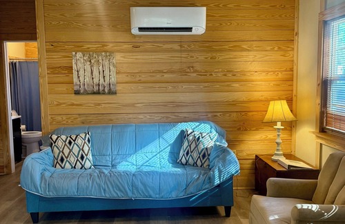 Discover the beauty of Andalusia from this cozy 1-bedroom cabin. This cabin has everything you need for a perfect getaway. The bathroom features a refreshing shower, and there's even a coin laundry on-site for convenience. We also have a full playground, fishing pond and pool to keep you busy on property! We're happy to assist with any questions while you stay at our cabin.