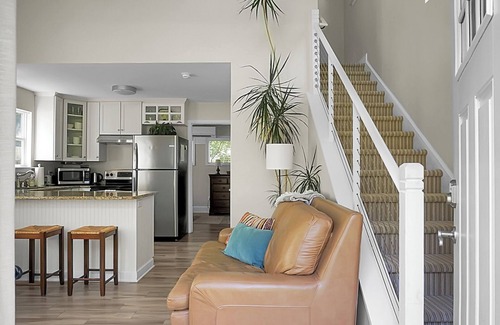 Enter the cottage from the beautiful, private courtyard area. On the first level, the cottage offers a bright, spacious and stylish living area with a fully equipped kitchen (including a fabulous coffee station), master bedroom with 1 queen bed, a private full bath and separate laundry. On the second level, a large bedroom features 2 queen beds, ensuite full bath, and remote work station with Wi-Fi. The front porch invites you to enjoy morning coffee or afternoon tea as you sit at the bistro table greeted by the native birds and the beauty of the garden flowers. It is also a perfect place for an evening of stargazing with your favorite glass of wine!