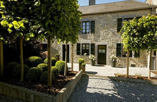La Ferme d'Amélie is a charming retreat tucked behind an 18th-century church in a peaceful village in the Ardennes. This confidential hideaway adjoins the owners’ home and opens to a flowerbed, a bluestone terrace with a barbecue, and a lawn that stretches toward pastures and ancient forests. The moment you arrive, the warm, curated interiors invite you to unwind.