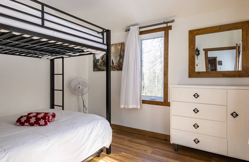 Cozy 4-season cottage with high-speed internet, perfect for families, couples, and nature enthusiasts seeking a tranquil escape just 1h15 from Montreal. Nestled on 50 acres of private, picturesque forest, this haven offers direct access to a serene river with a spacious dock, 2 double kayaks, and a picnic table. A playground and a trampoline are right in front of the cottage. Experience the ideal blend of relaxation and outdoor adventure at our charming hideaway.