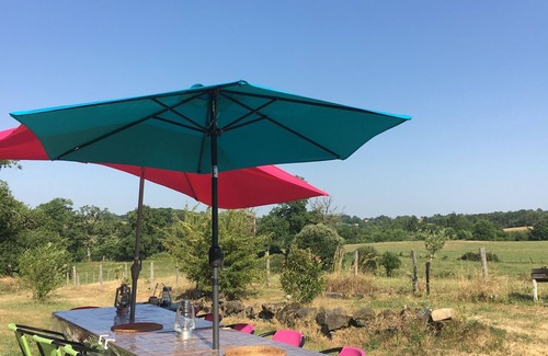 In the middle of nature, 4 hours from Paris / Nantes / Bordeaux / Lyon 3 hours from Toulouse (A20 access at 2km), the location is ideal for groups of 2/3/4 families or friends who want to meet from all over from France: Facing south with panoramic views of the Limousin bocage, located on a family property (former farm of one of the castles of the Bastide).