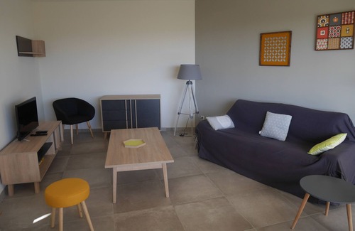 On the ground floor, a fully equipped kitchen / living room. 1 living room (access by a few steps) with sofa (convertible into bed), flat screen TV and DVD player. 1 separate wc with hand basin.