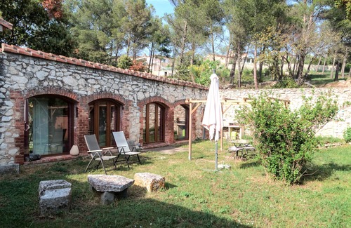 Air-conditioned country house with private garden surrounded by pines and oaks, joint ownership not overlooked. Exceptional location between Aix en Provence and Marseille.