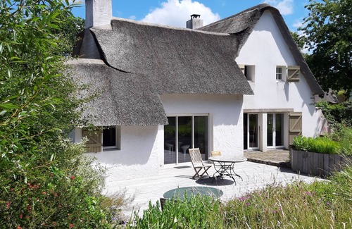 Great sunshine because Orientation East West thatched cottages, absolute calm, we are facing fields and down the hamlet, the hamlet is overall very well restored with very pretty thatched cottages typical of the region.