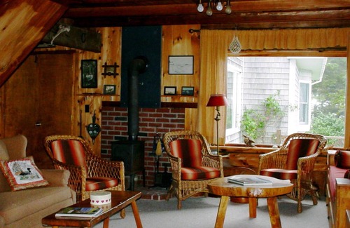 Built in 1879, Camp Galashiels has been in the same family since 1905. The cedar-shake covered cottage includes a wrap-around living room and dining room, bathroom, galley kitchen with modern appliances, and one bedroom on the first floor, with two more bedrooms on the second floor. A covered veranda surrounds the cottage on three sides. The back deck offers a protected view of the spruce woods.The cottage overlooks Walker's Beach, with a private path to the beach. A private dock with deep water anchorage invites swimming, fishing, and boating. Public boat ramps are located nearby, and kayaks can be rented in Friendship village. A tennis court is available right on Martin Point. A full spectrum of summertime activities is available within a 45 minute drive from Boothbay to Camden, but here you can enjoy the real Maine in a secluded fishing village - lobster available right from the docks! Relax; enjoy sea and shore activities right at your doorstep in rustic elegance and seclusion!