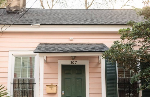Welcome to our charming pink cottage, just a two block walk to Forsyth Park, located in the historic district of Savannah, GA! You will get to stay in one full side of our remodeled 1870 duplex cottage. We have been able to preserve much of the original character of the cottage all while adding some modern luxuries for you to enjoy. Have a relaxing evening in the private outdoor courtyard with a tree swing and outdoor lights. We can't wait to host you and we hope you love our NEW custom mural!
