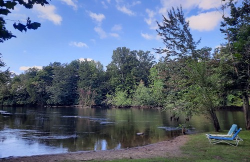 You will have the campground practically to yourself during the off season. Take advantage of the private boat launch, beach area, playground, fire pit, basketball court, deck looking over the river, wide open space and even reserve the golf cart for a small added fee. Golf Cart is available on a first come first serve basis.