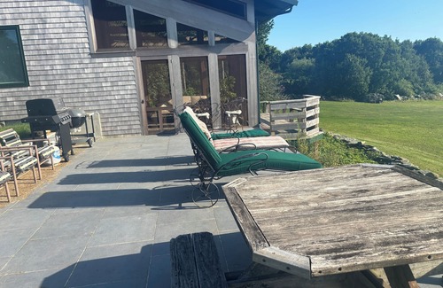 Make yourself at home in this brilliant Little Compton retreat, where nature surrounds your every turn. Wake up to the sound of birds singing and the gentle rustle of the Sakonnet breeze through the trees. The cottage offers expansive outdoor living spaceβincluding your own screened porch, terrace, deck, and sweeping lawnsβperfect for soaking in the ocean breeze and panoramic coastal views. Walk along our private paths to the water, passing old growth forests, ponds, and pastures where friendly cows graze and playful baby calves roam. The property is nestled among lush gardens that invite quiet moments of relaxation and reflection. Whether sipping your morning coffee or unwinding at sunset, this peaceful waterfront escape offers a strong connection to nature and a deep sense of calm.