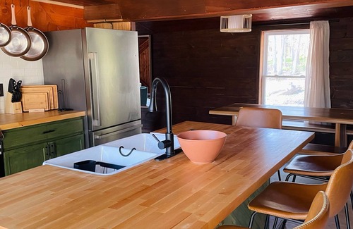 Our lovely 2BR/1BA cottage has been updated with a new kitchen, bathroom and a large deck that features a spacious jacuzzi. As soon as you enter, you walk into a spacious and open concept space that features a living room with comfortable seating that opens up onto the deck in the back, the dining space, and an open kitchen that offers another entrance onto the deck. The fully stocked kitchen features an island with plenty of space to prepare meals as well as be a gathering area for everyone to be together. Both cozy bedrooms have large windows that look out into nature and invite you to feel like you're part of it. We have fast and reliable internet for your streaming or work on your laptop needs. The deck which overlooks the beautiful woodland garden can be accessed from the living room and kitchen. It features a comfortable seating area with a fire pit, a jacuzzi and a bbq grill. The house is as comfortable as it is functional.