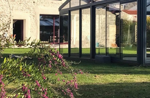L'Abri Gite Tranquille welcomes you in a very decorative 80m2 house with private indoor spa and large heated swimming pool, nestled on a 6000 m2 property bordered by a stream, in a small hamlet in the heart of the Vendée hedged farmland. For a resolutely relaxing stay, l'Abri Gite Tranquille offers you 2 bedrooms separated by a fixed partition with a bay window (convertible into a suite for two people) with a very comfortable king size bed in 180 cm and two beds in 90 cm , a comfortable living room of 26 m2 with corner sofa , a fully equipped kitchen and a large 20m2 bathroom with a 5-person spa (including an elongated) high-end (active oxygen ozonator, 36 hydrojets, 21 jets) Two separate toilets, on the ground floor and upstairs. Parking and landscaped terrace, ping pong table, library, flat screen, DVD player, board games, sheep, chickens, vegetable patch, heated swimming pool from april to october, pool to share with the owner (11.5 mx 5 m), hiking and biking trails. Leaving the cottage will make your stay an exceptional moment. Holiday checks accepted. House cleaning fees : 60 euros. Deposit of 700 euros required