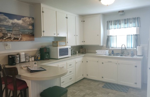The house sleeps up to four (4) people. The main bedroom is spacious with a queen bed and windows for light and fresh air. The second bedroom sleeps two with a day-bed that can be configured as two twins or joined together to make a "king" bed for a couple. The cottage is sunny and bright with lots of windows. Room-darkening blinds are provided on all the windows. A large air conditioner cools the whole house quite well, but a smaller window air conditioner is provided in the main bedroom as well to assure your comfort.
