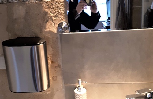 On the ground floor, in the living room, two-seater convertible sofa (high-end, daily use, instantaneous opening rapido system), adjoining and private bathroom (this sleeping is independent because the occupants of the floor can access the kitchen, to the veranda and exit without crossing the living room).
