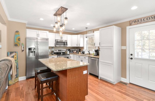 Cozy cape in the ❤️ of Middletown, MD. Within walking distance to quaint Middletown restaurants, shops, & parks. Set your sights on adventure within a short drive. Enjoy downtown Frederick restaurants, shops, parks, & nightlife. Visit the local wineries, breweries & festivals. Hike the Appalachian trail. Float the Potomac River. Bike the C&O Canal. Ski the slopes @ area ski resorts. Golf 18 holes @ the championship golf course. Visit wedding venues. Go antiquing. Tour quaint nearby towns. Etc ~ Catch Cottage Fever! CREAM OF THE CROP in short term rentals. Straight out of Pinterest ~this charming cape/cottage designed and built in 2015 personally by myself was designed with modern conveniences in mind paired with the charm of yesteryear. Won't you be my guest :) Everything about this charmer screams HOMESTEAD! Enjoy the high speed WIFI and SMART TV'S (use your own logins) . As you enter the front door from the charming "wood look" trex front porch graced with rockers you will be greeted with a soaring two story ceiling, wood floors, a floor to ceiling stone hearth with a gas "wood burning" look fireplace. From the minute you enter the cape a farmhouse, trendy, boho style feel will embrace you. Furnished in 2019 with all furniture to include in the two story family room a reclining loveseat & stationary sofa, smart 49 inch TV, toss pillows, plush cable blankets, industrial style end and coffee tables, burlap rug, gas fireplace, and decor to catch your fancy for hours including antique hurricane lamps to catch up on a good read by. Wander to the big, open kitchen and there is a chefs dream - farmhouse style kitchen with ss appliances, huge center island, bar stools, and furnished with all new 2019 small appliances and cookware to include but not limited to coffee maker, blender, toaster, small gadgets ~ corkscrew, can opener, bottle opener, etc, pots & pans, bakeware, roaster, silverware, wine glasses etc. Your brunch is served on Magnolias "Hearth and Hand" farmhouse dinnerware. A few bottled waters and coffee & creamers are there on arrival. The kitchen nook is furnished with a distressed table and AGAIN, admire the decor throughout - a screen door leads to the trex deck in rear yard furnished with wicker lounger, and a firepit and grill. The dreamy master on the upper level is just that - DREAMY! Furnished with a plush king size memory foam mattress, hotel style sheets, fuzzy blankets, and boho style duvet and shams this bedroom assures sleep for hours. A 43 inch smart TV to Netflix and chill. 2019 Wolf dresser and nightstand with a lamp for reading. More decor upstairs to admire. A large walk in closet for longer stays, and a trendy master bath with floor to ceiling tile shower. Soft, plush towels for a wonderful showering experience. The lower level master suite is fabulous as well. A plus queen size memory foam mattress awaits you there. The decor in this suite screams patriotic from the new navy dresser and nightstand, to the red, white, and blue bedding, to the new red recliner. There is also a desk in this area for those who need to work. The lower level has its own tile full bath and laundry room as well. There is a flat screen TV in lower level suite. There is also an inflatable queen size bed in the storage room. There is no shortage for extra towels, pillows, or bed sheets for either level suite. High speed internet and cable make the stay very enjoyable not to mention work friendly. A shed for storage. *please note the sectional in the pictures was broke - there is now a reclining loveseat and stationary sofa* storage during your stay if you bring bikes, kayaks, skis, golf clubs etc...A paved drive with two parking spaces. There are so many adventures to explore nearby but you won't want to leave your getaway cape. For the business traveler, this cape offers an affordable, comfortable stay and a private place to unwind after the work day is over with many options to grab a bite to eat and a cocktail before turning in or throw a steak on the grill and enjoy some quiet time in the backyard or some front porch sitting in the rockers. Please refer to cancellation policy for any cancellations. Any refunds/cancellations processed in accordance to the policy.