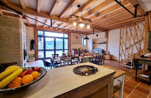 200 m² gîte on two levels, accessible to people with reduced mobility from the outside. The garden level opens onto a hall distributing 3 family bedrooms, each equipped with a double bed 180x200 (adjustable into two single beds on request) and a mezzanine with two single beds accessible by a miller's ladder. One of the bedrooms is PMR with adapted bathroom and private toilet. This level also includes a separate toilet and a sanitary area with 2 showers and a double sink. On the courtyard level, a large, friendly living room with kitchen open to the dining room and a bright relaxation area, and a PMR toilet. Heated by an ecological mass stove, it diffuses a gentle and constant heat. The owners, concerned about the environment, will be happy to explain its operation to you. For your comfort, utilities are included and beds are made upon your arrival. A vacation rental with nature, heritage, and hiking in Le Cergne in the Loire Valley! The cottage is the starting point of the Way of Saint James, an invitation to walk through the forests and pastures. Admire the Destre Chapel, lose yourself in the narrow streets of Arcinges, or stroll to the Benedictine Abbey of Charlieu. The region is full of heritage and landscape treasures. Cycling and mountain biking enthusiasts will find an ideal playground, while gourmets will appreciate the local flavors of the Roanne region. A natural destination par excellence, to discover with family or friends. The renovation of this former 19th-century barn was designed with sustainable materials and energy-efficient methods, for a comfortable and environmentally friendly stay. This cottage, attached to the owners' house, welcomes you in a peaceful setting, with a private entrance, shared courtyard, and a 350 m² garden.