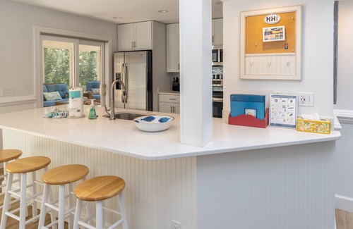 Cook a delicious family meal in our newly renovated kitchen. Enjoy it together in our dining room or move outside to the screened-in porch or deck overlooking the large pool area on a beautiful South Carolina evening.