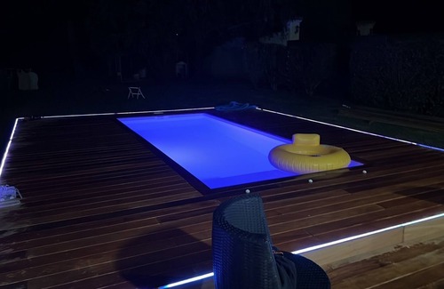 Discover the comfort and space of our 300 m² house, ideally located with a 2000 m² garden for a relaxing and entertaining vacation. With its 4 spacious bedrooms and 3 bathrooms, our residence comfortably accommodates families or groups. Enjoy a large bright living room, a modern open kitchen, a garage, a private cinema room, and an equipped gym.