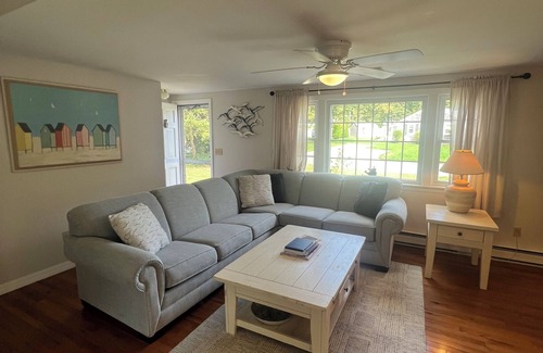 This comfortable South Dennis vacation house is located in a quiet neighborhood, convenient to Cape Cod’s most popular beaches, and steps from the Cape Cod rail trail. The Cape’s famous Mayflower beach is only a short drive away, as well as many Dennis beaches and local area golf courses. Conveniently located close to grocery stores, restaurants, and shops. Private backyard with patio, outdoor shower, and fire pit. Central air. 2 spacious bedrooms (one with new King mattress, other with new Queen mattress) as well as a new sectional with queen sofa bed.