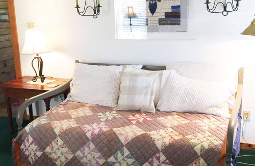 Charming Farmhouse on the Anderson-Winter Farm, located 9 miles from Round Top, includes an idyllic 20 acres with wraparound porch with rockers and swings. Open two-story pine interior in Main House with large master bedroom (king and day bed), large master bath, upstairs bedroom with 2 beds (queen and twin) and bath, and second upstairs sleeping room with twin bed. Cabin next door has 2 beds (full and twin) and bath with large antique ball/claw bathtub. Beautifully appointed with comfortable furnishings. Former horse farm with barns and corral. Rescue horses roam in outer pastures. Private road for walks.