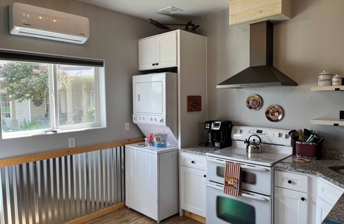 This 1-bedroom apartment is perfect for your escape to the Greater Wenatchee area as a single, couple or small family. The cozy living area includes an electric fireplace and large Roku TV. Take a relaxing soak in the hot tub on the back patio after a day of exploring the outdoor mecca that is Central Washington. Watch TV in bed with the 2nd wall-mounted television. Or connect to wifi to update your social media. After a good night's sleep in the exceptionally comfortable queen bed, you will awaken rested for another day of adventuring! You'll find everything you need for your morning beverage of choice (coffee k-cups, tea bags & cocoa provided) in the well-stocked, full kitchen.