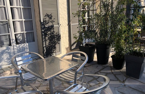 Terrace area with garden furniture and barbecue. Beds made upon arrival.