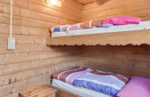 Layout: Ground floor: (Entrance, hall, open kitchen(cooker(4 ring stoves, gas), coffee machine(filter), oven, fridge(+ freezer)), Living/diningroom(double sofa bed, TV(flatscreen), dining table, radio), bedroom(bunk bed), bathroom(shower, washbasin, toilet))