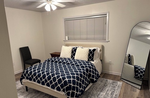 Bryan/College Station is waiting for you at this recently refreshed 3-bedroom house. Nestled in a tranquil neighborhood, guests can relax and unwind with access to everything you want within minutes. With 1 queen bed and 2 full beds, everyone will have a peaceful night's sleep. The 2 bathrooms are nicely appointed with a bathtub/shower and fresh linens/toiletries. Whether you're visiting for a sporting event or an on-campus function, you will not find a more convenient property to serve as home base for your getaway. We look forward to welcoming you! Walk across the street to the beautiful new Midtown Park and visit Legends Event Center, TopGolf, or Schulman Movie Bowl Grille. Or drive 5 minutes to Century Square, PopStroke, shopping, and restaurants. You will not find a more convenient location!