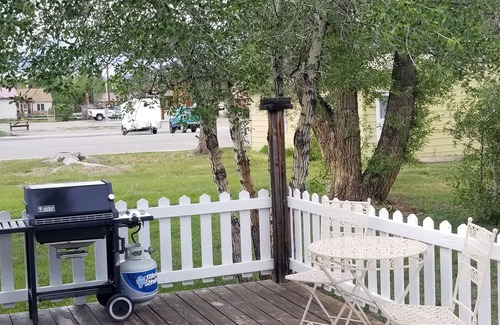 Perfect home for a couple or small family. This historic home has a great deck to sit out and relax with a private grill and seating. Right in the center of Pinedale, you are only steps away from restaurants, shops, grocery stores and more! This house has 1 bedroom with a full bed and a separate fold out twin bed that can be used in the livingroom. Kitchen is fully stocked with what you will need for your vacation. Wifi avaliable as well as a smart tv with Roku, Netflix, and Disney Plus.