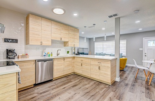 Upon entry, you'll be met with a bright interior and a warm feeling of welcome throughout the space. Marvel at the contemporary decor, the eclectic color palate of furniture, and the fascinating light fixtures. Make yourself at home by relaxing on the plush furniture, carrying on great conversations with loved ones, and watching your favorite shows on the large TV in the living area. Prepare grand meals and beach picnic snacks in the full kitchen, equipped with stainless steel appliances, a breakfast bar, and all the cupboard room you'll ever need. With four beds, there's more than enough room for everyone to get a comfortable night's rest from the day's adventures. Find the epitome of comfort in the main bedroom, which boasts a four-poster Queen-size bed, a TV for private viewing, and a lovely en suite bathroom with a walk-in shower. Make memories that'll last a lifetime when you come to Cocoa Beach!