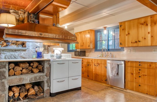 Enjoy a stay in a lovely home near the river, with a lovely firepit you can gather around when the sun goes down! This cabin-inspired space features the modern amenities guests need, from a private washer/dryer to full-size kitchen appliances. When the weather is lovely, enjoy relaxing out on the furnished deck. Inside, there's plenty of room on the sectional sofa or in front of the wood-burning fireplace. You'll enjoy having direct access to the Sandy River from this comfortable home in the woods!