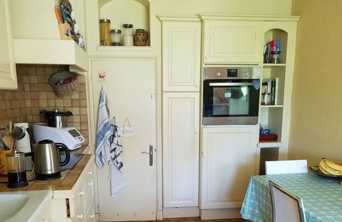 The house consists of an equipped kitchen (ceramic hob, oven, microwave), a storeroom with washing machine and dishwasher, a living / dining room, a bathroom with bathtub , separate toilet and two bedrooms each with a double bed. Ability to add an extra mattress (latex) to accommodate a 5th person in one of the rooms. In the spring, the veranda allows you to enjoy the garden during meals. A stone barbecue and a garage are also available.