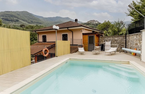 Yes, this Borgomaro villa has a swimming pool. Check the Facility Overview section for details about the pool and other available facilities.